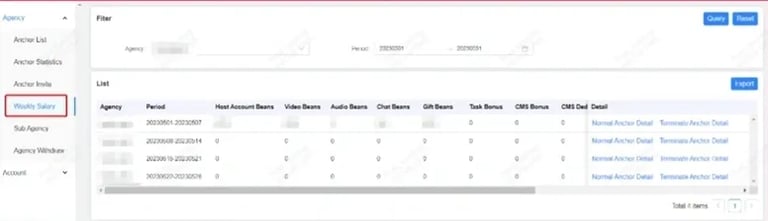 Go to Weekly Salary option in HiiClub agency to check weekly earn of hosts